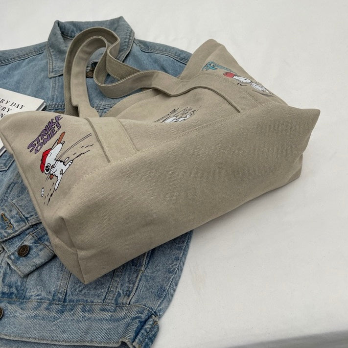 Step up your casual style with this playful Snoopy-themed canvas tote bag.